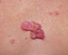 4、蟹足肿:因为疤痕的形状如螃蟹的肢体,且成咖啡色、疤痕会向四周正常的皮肤侵袭,这是里面的纤维牙细胞不断分裂,像肿瘤一样会扩大。常发生的部位为肩部、前胸。