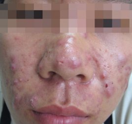 2、丘疹性,常见的皮肤损害以发炎的小丘疹为主,高出皮肤,大小有如米粒到豌豆大,较密集,有的也较坚硬,颜色是淡红色或深红色,有时在丘疹中央可以看到黑头或顶端发黑的皮脂栓,时有痒或疼痛感。