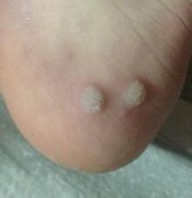 鸡眼有硬软之分。硬鸡眼好发于足底以及小趾外侧,趾背等骨突出或易受压摩擦处,圆或卵圆形。表面扁平,质硬,呈淡黄色,其可深达其皮的乳头层,在站立或行走时,往往因压迫乳头层的感觉神经末稍而引起剧痛,致走路艰难。软鸡眼多发生于相邻区两趾之间的一趾,由于潮湿而被浸软,因而变为灰白色,且有恶臭。