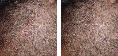 (4)第四阶段:中药调理、增强免疫。视病情是否采取杀菌治疗,注重促进皮肤健康细胞的生长和微循环代谢。此阶段患者皮损部位基本恢复正常、新生的毛囊基本健康。较重患者获得。