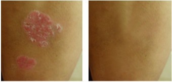 该治疗打破了传统的药物服用弊端,通过皮肤渗透给药的方式,将药力和热力结合在一起,使药物不经肠胃破坏,直接作用于病变区域,药物的药效更迅速。临床数据表明,以上患者在较短时间内银屑病病变症状基本消失,且持久,对银屑病皮损的治疗达到了水平。