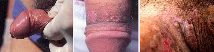 (2)外生殖器或肛门周围群簇小水疱,很快破溃形成糜烂或浅溃疡,自觉症状较轻。