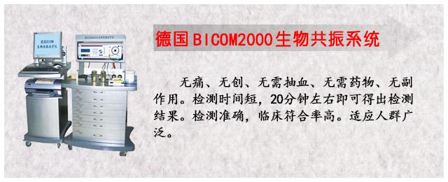 采用进口德国BICOM过敏源检测仪,过敏源检测准确、快捷、全面,检测时间只需15-20分钟即可得出检测结果,摒弃了传统检测,真正实现无痛、无创、副作用小、无需抽血检测过敏源。