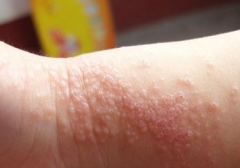 急性湿疹:可发生于身体的任何部位,常见于头、面、耳后、乳房、四肢远端及阴部等处,常对称分布.损害呈多形性.皮肤上推荐出现多数密集的点状红斑及粟粒大小的丘疹和丘疱疹丘疹的基底潮红,有轻度浮肿.并且很快变成小水疱,疱破后形成点状糜烂而及结痂等.自觉症状为剧烈瘙痒,有灼痛,常因搔抓或热水洗烫,造成糜面进一步向周围扩散,使皮损境界不清.若处理得当,炎症减轻,出现脱屑,皮疹可在2-3周内消退,如处理不当,病程延长,易发展成为亚急性和慢性湿疹。