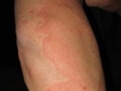 症状发病很急,主要的也是因为突出它这个急字。患有这种病的常大多因为是吃了海鲜、药物等之后,皮肤突然红肿、发痒,并出现大大小小、形状各异的疹子,开始表现一片一片的,慢慢有的就融合成一大片,这些荨麻疹的疹子一般会在内消失,但也有可能重新起疹子;这种的情况会此起彼伏。所以它的一 个特点就是迅速发生、迅速消退。